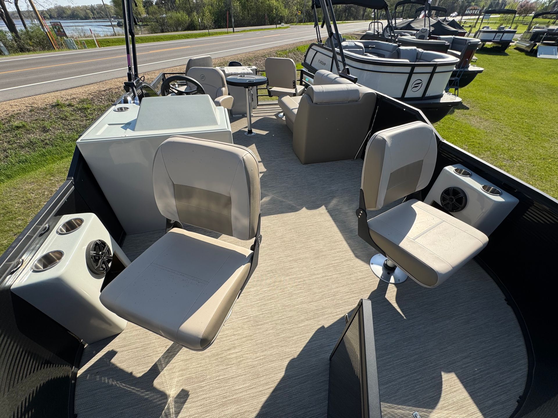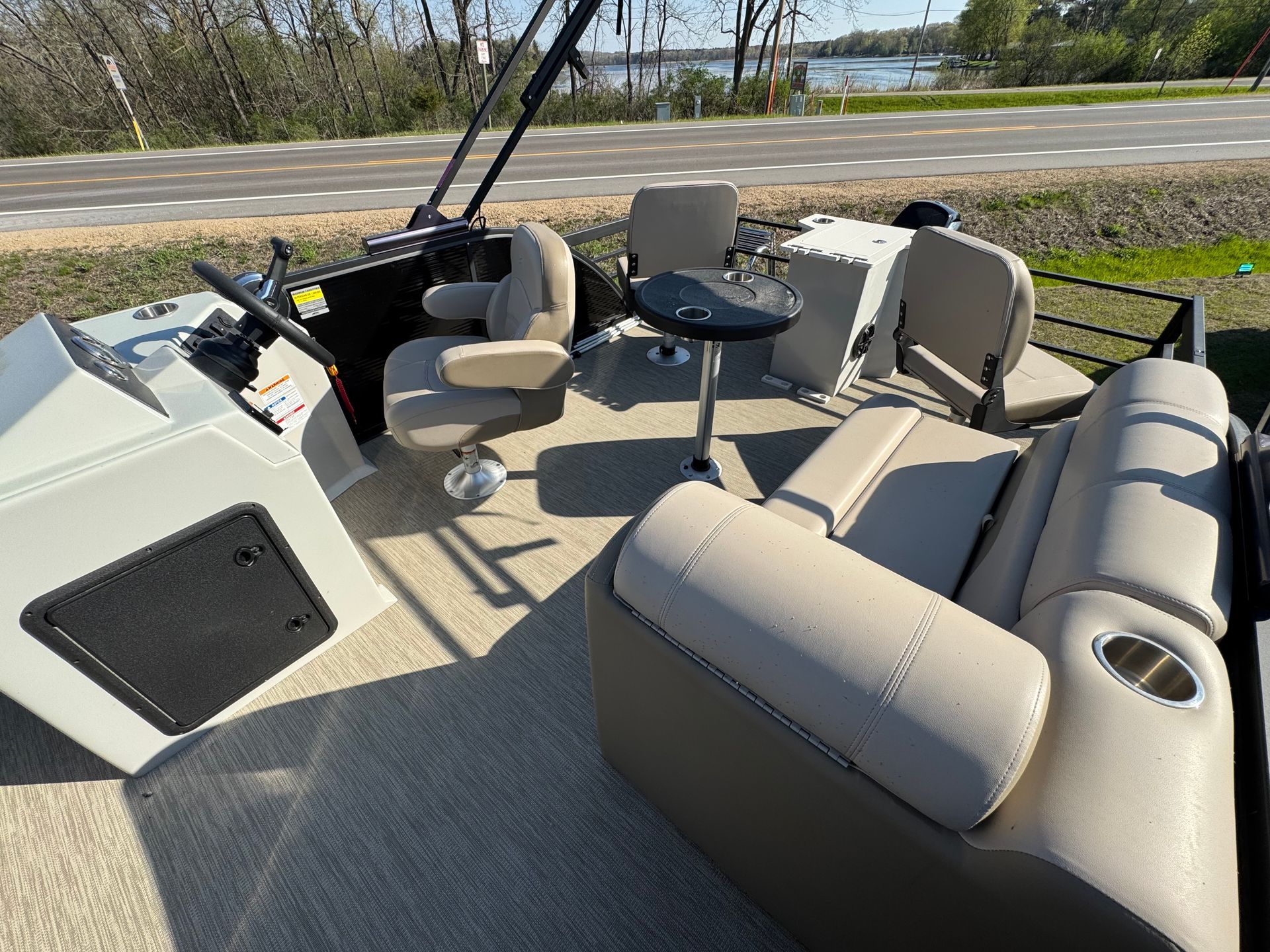 This pontoon is set up great to enjoy the day on the water and do some great fishing! Has a live well, fish locator and stereo with Aux, iPod hook ups. We deliver to the lake of your choice.
